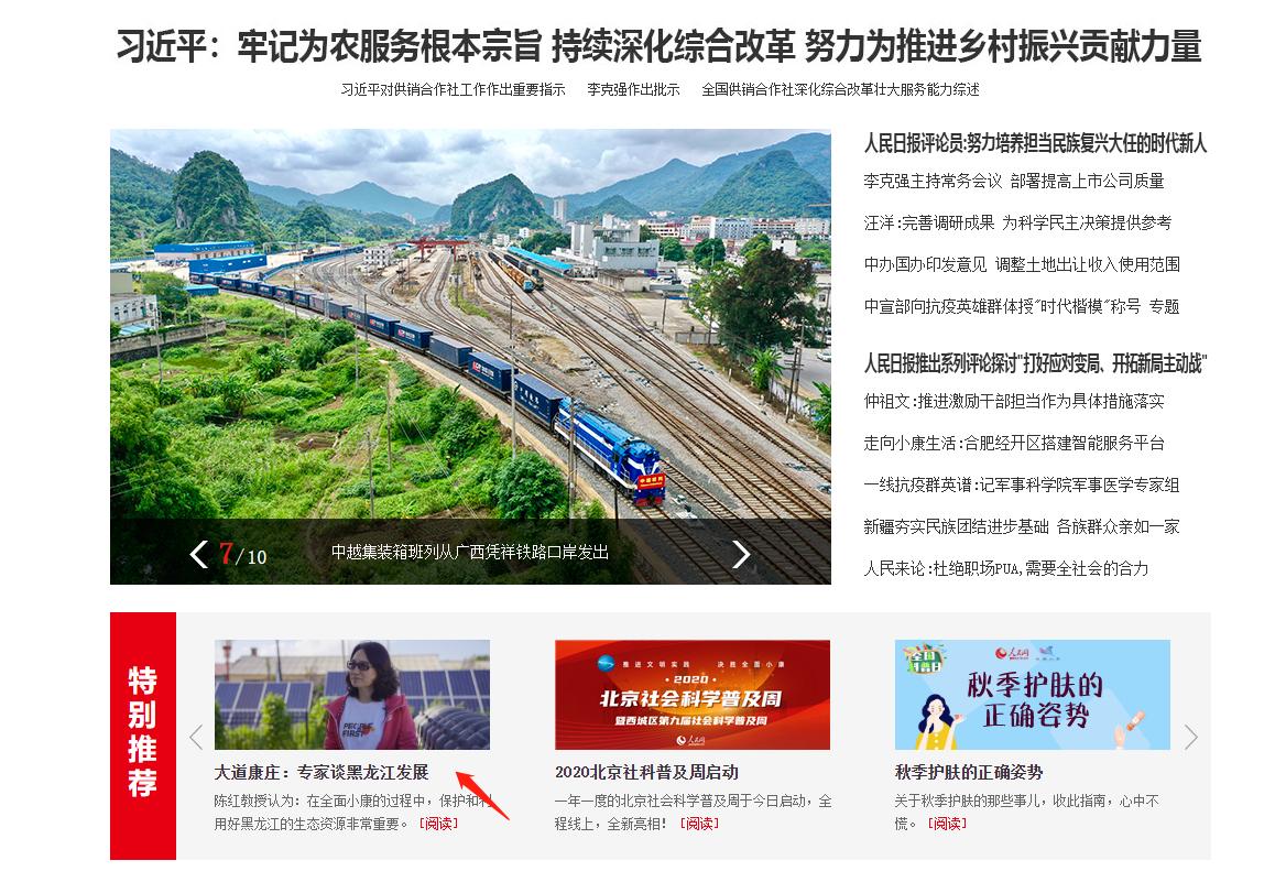 9月24日,人民网在主页特别推荐的重要位置,以《保护和使用好黑龙江省的生态资源非常重要》为题报道了威尼斯官网教授陈红对黑龙江省脱贫发展的相关建议。
